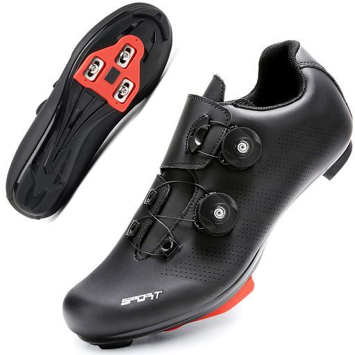 [SEROUNY]サイクルspdシューズサイクリングロードバイク自転車SPD/SPD-SL両対応MTBシューズ快速靴紐ビンディングシューズ滑りにくクリートセット218Black37