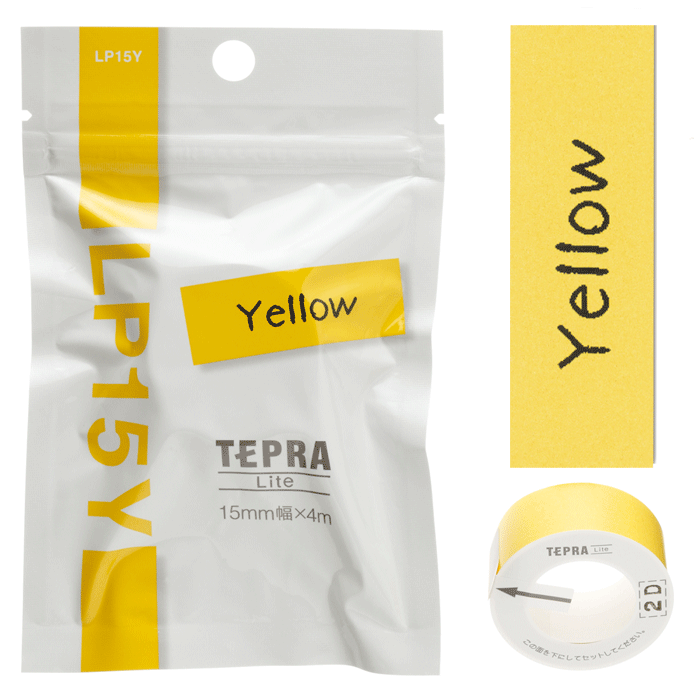 メーカー希望小売価格はメーカーカタログに基づいて掲載しています◆こちらの“こはる”マスキングテープもお使いいただけます“こはる”マスキングテープ(テープ幅:15mm 長さ:4m)MPT001 ピーチMPT002 ライトグリーンMPT003 ライトブルーMPT005 ドロップレッドMPT007 ストライプパープルMPT009 ストライプトリコロールMPT010 レースピンクMPT012 フラワーMPT014 キャンバスベージュMPT015 キャンバスブラウンMPT016 ドットピンクMPT017 ドットミントブルーMPT018 チェックパープルMPT020 コットニークラウドMPT022 ホワイトウッドMPT023 ぼたんMPT024 うさぎMPT025 おうちMPT026 キャンディピンクMPT027 キャンディブルーMPT028 スケッチクローバーMPT029 スクエアピンクMPT030 スクエアブルーMPT031 デイジーピンクMPT032 デイジーイエローMPT033 キルトパターンMPT034 ストライプビタミンMPT035 ストライプパステルMPT036 ハートMPT037 あられMPT038 たまMPT039 ひしがたMPT040 わっかMPT041 リボンピンクMPT042 リボンイエローMPT043 パーティーフラッグ MPT044 スケッチナイト ※こちらの商品はゆうパケット(メール便)での発送(送料290円)が可能です。ご希望の際は、配送方法を「メール便」に変更してください。※ゆうパケット(メール便)を選択された場合は下記注意事項を全てご了承いただけたものとします。 ◆ゆうパケット(メール便)での出荷についての注意事項◆配送日時指定について ご注文の際に配送日時指定がございましたら通常の宅配便にて発送させて頂きます。 送料につきましては通常料金が適応されます。(メーカー直送商品を除く、3980円(税込)以上のご購入で無料です) 但し通常発送の場合でもお届けは最短納期以降になります。ゆうパケット(メール便)対象商品以外との同梱につきまして ゆうパケット(メール便)対象商品以外との同梱で規格サイズ(梱包資材を含めA4サイズ厚さ20mm以下)を超える場合は通常の宅配便での発送となります。 送料につきましては通常料金が適応されます。(メーカー直送商品を除く、3980円(税込)以上のご購入で無料です)代金引換でのお支払いにつきまして ゆうパケット(メール便)での配送の場合は代金引換がお使い頂けません。 代金引換でのお支払いをご希望される場合は通常の宅配便をご指定ください。 送料につきましては通常料金が適応されます。(メーカー直送商品を除く、3980円(税込)以上のご購入で無料です)高額注文につきまして 1回のご注文で他の商品も含め3980円(税込)以上ご購入いただいた場合は送料無料で発送させて頂きます。(メーカー直送商品を除く)配送方法のご指定につきまして 「ご購入手続き」の際の配送方法を「メール便」にご変更ください。メール便送料無料商品につきましては、ご注文時は送料(290円(税込))が加算されますが弊社にて修正致します。梱包形態・お届けにつきまして 梱包は簡易包装となります。(一般的な茶封筒です)。 出来るだけしっかり梱包いたしますが規格サイズを超えないようにするため十分ではない場合がございます。 ご注文の数量により複数個口となる場合がございます。その場合の送料は個口×290円となりますのであらかじめご了承下さい。 また複数個口の場合で宅配便の送料を超える場合は宅配便での出荷に変更させて頂きます。 ゆうパケット(メール便)での発送の場合配送中の曲がり・汚損及び投函後の紛失等があった場合でも商品につきましては補償できませんのであらかじめご了承ください。ゆうパケット(メール便)のお届け日数予定 ・沖縄以外の九州及び山口県:発送後翌々日のお届け予定 ・上記以外のエリア:発送後約3日後のお届け予定 ※離島及び山間部等の一部地域はさらに日数が必要となります。 ※交通機関の乱れによる配送遅延につきましては補償できかねますのであらかじめご了承下さい。 ◆ラインナップLP15S ホワイトLP15R レッドLP15P ピンクLP15Y イエローLP15G グリーンLP15B ブルー 「テプラ」Liteテープ 製品仕様品番品名カラーサイズLP15YTEPRA Lite テープ イエローテープ幅:15mm 巻長さ:4m