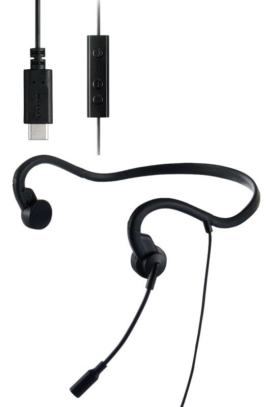 エレコム 骨伝導イヤホン マイク付き 骨伝導ヘッドセット 有線 Type-C 軽量 ペアリング・充電不要 ハンズフリー 耳を塞がない 耳が痛くならない Web会議 オンライン HS-BC05CBK