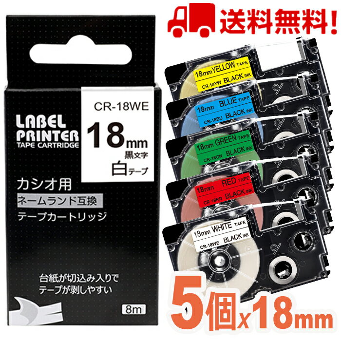 ポイント10倍! 5 個 カシオ ネームランド テープ 18mm 互換 XR-18BU XR-18GN XR-18RD XR-18WE XR-18YW ねーむらんど カシオ CASIO ラベルライター i-ma KL-SP10-PN KL-SP10-SA KL-SP100-MM KL-P40-BU KL-M7CA 送料無料