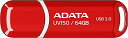 【中古】 ADATA USBメモリ USB3.2 Gen1 64GB キャップ付 レッド AUV150-64G-RRD