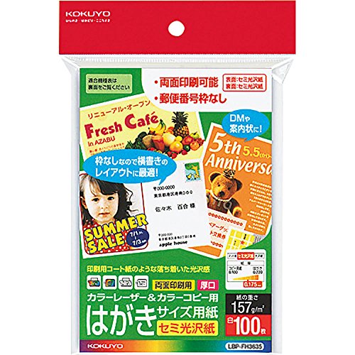 コクヨ(KOKUYO) カラーレーザー カラーコピー はがきサイズ 両面印刷 セミ光沢 LBP-FH3635