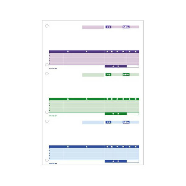 【A4サイズ】コクヨ/プリンタ用カット紙フォーム仕切書3面付A4 紫/緑/青(PCF-1304)レーザープリンタ対応 KOKUYO