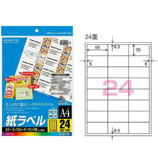 【A4・24面】KOKUYO/カラーレーザー&カラーコピー用 紙ラベル LBP-F694 24面 20枚 カラーレーザー用ラベルの定番 コクヨ