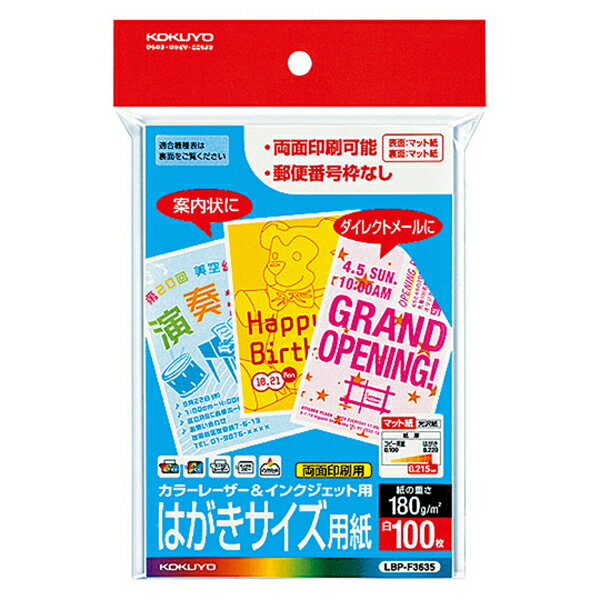 コクヨ カラーレーザー&インクジェット用はがきサイズ用紙(マット紙・100枚) KOKUYO LBP-F3635