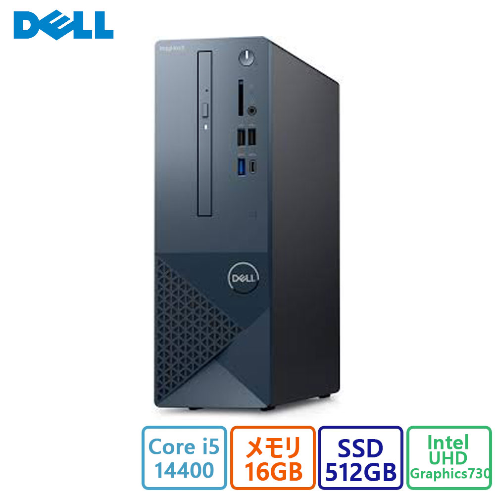 【基本スペック】 OS:Windows 11 Home Office:Microsoft Office Home and Business 2021 筐体タイプ:省スペース型デスクトップPC CPU:Intel Core i5-14400(第14世代/Raptor Lake Refresh/2.5GHz/10コア) メモリ:16GB(DDR5/PC5-35200)/最大64GB/スロット数:2(空き:1) ストレージ:512GB SSD(M.2) グラフィック:Intel UHD Graphics 730(CPU内蔵) 光学ドライブ:DVDデュアルドライブ 通信機能: ・有線LAN:10/100/1000Mbps ・無線LAN:IEEE802.11a/b/g/n/ac/ax(Wi-Fi 6対応) ・Bluetooth:Ver.5.3 インターフェース: ・HDMI端子 ・DisplayPort ・USB 3.2 Gen1 Type-A/Type-C サイズ・重量: ・本体サイズ:約92.6(幅)×292(奥行)×290(高さ)mm ・重量:約4.02kg カラー:ブラック Inspironスモール デスクトップは、最新のインテル Core i5 プロセッサー (第14世代) を搭載。コンパクトかつ高性能を実現し、優れたセキュリティ機能搭載でプライベートでもビジネスでも活躍します。 ■実用的なパフォーマンス 最新のインテル Core i5 プロセッサー (第14世代) を搭載。どんなタスクも楽々とこなせます。また、接続しやすい前面に多数のポートを配置することで作業効率を向上します。 ■安心のセキュリティ設計 使いやすい組み込みのディスクリートTPM(dTPM)を搭載。商用グレードのセキュリティチップがパスワードや暗号化キーを作成、保存し、あなたの大切なデータを保護します。ビジネス シーンでも即戦力となる一台です。 ■生活スタイルにマッチする設計 シャーシは高さ・奥行30センチ未満のコンパクト設計。どのようなスペースにもシームレスに収まるよう設計された小型シャーシに、優れたパフォーマンスと機能を搭載しています。 ■便利な接続 HDMIとDisplayPort※1を使用して、他のモニターに簡単に接続できます。最大3台のフルHDモニターまたは1台の4Kモニターがサポートされます。前面と背面にある8 個の追加USBポートで、さらに周辺機器を接続できます。※ 1:HDMI 1.4(HDMI でサポートされる最大解像度は1,920 x 1,200 (60Hz)。4K/2K 出力は未対応)。ディスプレイにデイジーチェーン機能が搭載されている場合、ディスプレイ ポートは最大1台のUHD モニターまたは3 台のFHD モニターをサポートできます。 ■持続可能な選択をワンランク上へ このデスクトップはENERGY STAR 8.0の認定を受けています。EPEAT Silverに登録されており、EPEAT Climate+指定を達成しています。Climate+指定を達成していることで、このデスクトップは、脱炭素化に関する業界のベスト プラクティスに対応しています。