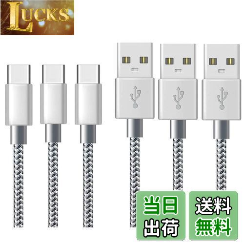 【送料無料】USB Type C ケーブル 【3本セット 2m+2m+2m】タイプc 充電ケーブル 急速充電 高速データ転送 高耐久 ナイロン編み 断線防止 Xperia XZ3 / XZ2 / XZ, Galaxy S10 / S9 / S8 / S10+ / 10e/ S20 / S20 Ultra / A71, Note 8 / 9 / 10/ 20等type-c機種対応