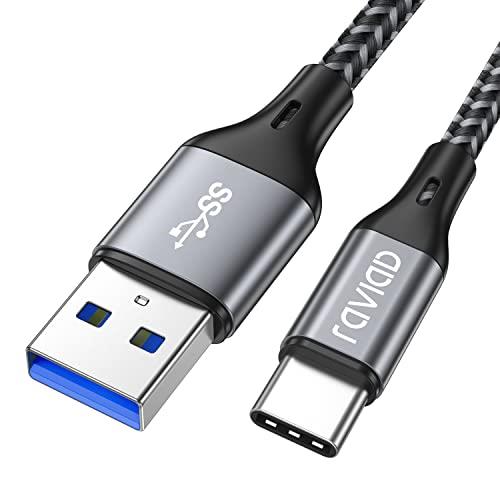 RAVIAD USB Type C ケーブル【3M/QC3.0対応】タイプ C ケーブル 3A 急速充電 高速データ転送 高耐久ナイロン編み USB-A to USB-C ケーブル Sony Xperia XZ/XZ2、Galaxy S20 S10+ S9、Huawei P30 P20 P10、LG その他Android USB-C機器対応 - グレー