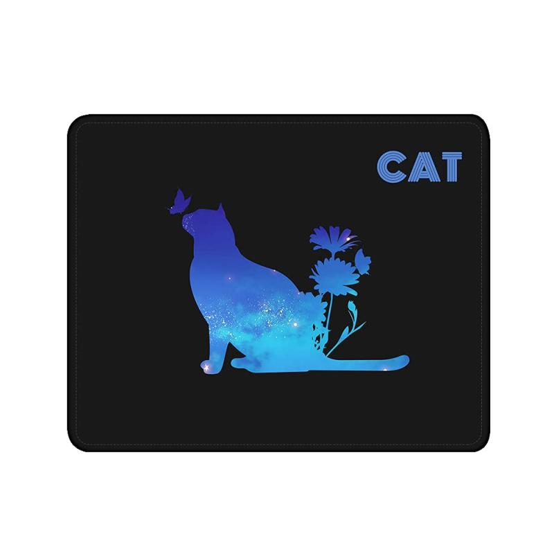 MarsHopperマウスパッド:オリジナル猫柄デザイン、ステッチエッジ、滑り止めラバーベース、サイズ26cm x 21cm (デザイナー Miss T)