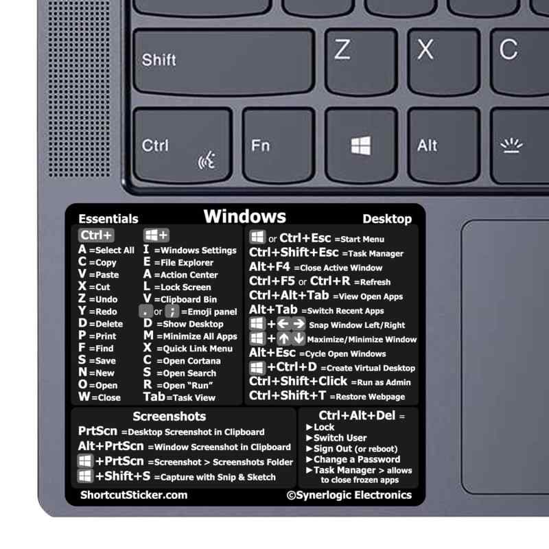 SYNERLOGIC Windows PC Reference Keyboard Shortcut Vinyl Sticker, laminated, no-residue adhesive, for any PC laptop or desktop S