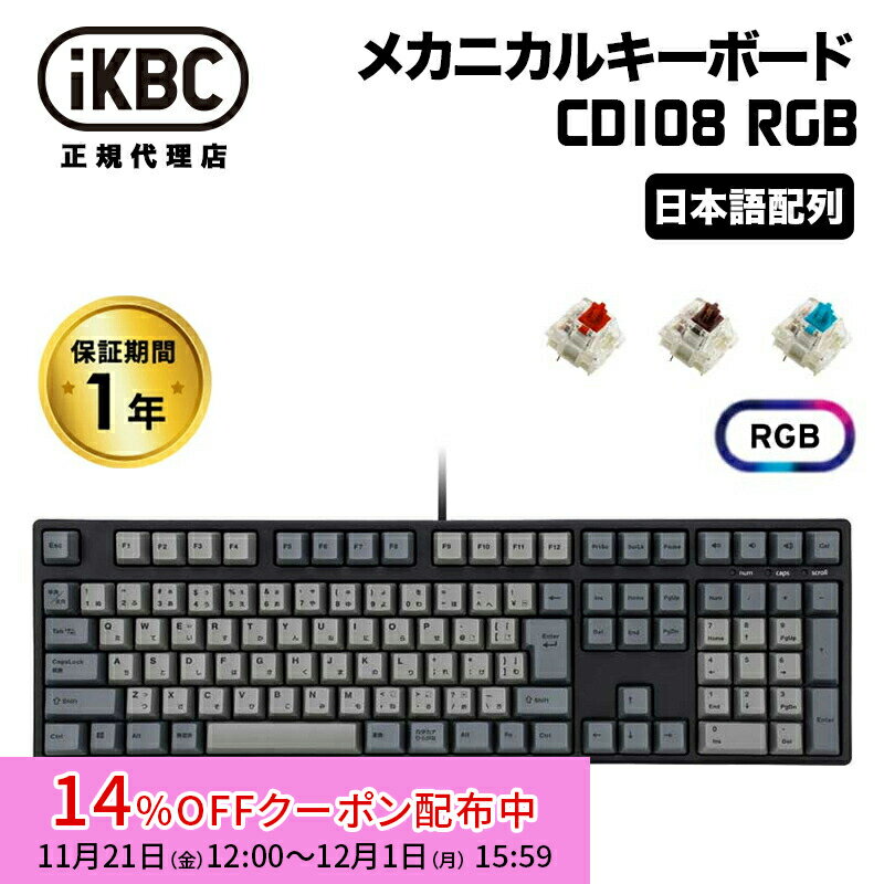 [14%OFFクーポン 12/1夕方まで]iKBC CD108 RGBシリーズ JIS配列 112キー メカニカルキーボード フルサイズ ホットスワップ 対応 IK-CD108シリーズ (RGB) アイケービーシー 日本語配列 GATERON 赤軸キーボード 茶軸キーボード 青軸キーボード 静音 CD108 PBT