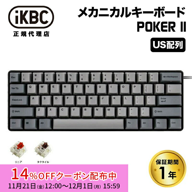 [14%OFFクーポン 12/1夕方まで]iKBC NEW POKER II コンパクト 60% メカニカルキーボード 有線 US配列 ホットスワップ 対応 IK-PK2-Gシリーズ アイケービーシー 英語配列 GATERON 赤軸キーボード 茶軸キーボード 静音 PBT win mac メカニカル マクロ DIPスイッチ