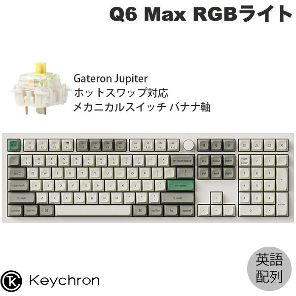 【セール★〜12/1まで】 Keychron Q6 Max QMK/VIA シェルホワイト Mac英語配列 有線 / Bluetooth 5.1 / 2.4GHz ワイヤレス 両対応 フルサイズ ホットスワップ Gateron Jupiter RGB バナナ軸 RGBライト カスタムメカニカルキーボード ノブバージョン # Q6M-P4-US キークロン