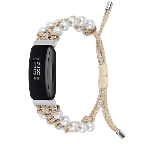 Bands Compatible with Fitbit Inspire 2/ Inspire HR/Inspire/Ace 2 Pearl Rope Adjustable Bracelet Braided Nylon Friendship Strap Accessories Bands Men Women Gift Girls (Inspire/HR/ACE2, Apricot)