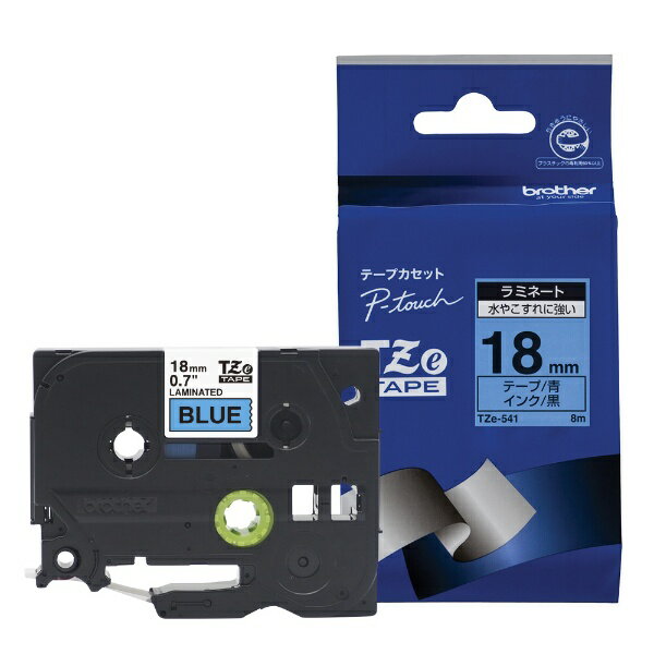 brother|ブラザー 【ブラザー純正】ピータッチ ラミネートテープ TZe-541 幅18mm (黒文字/青) TZe TAPE 青 TZe-541 [黒文字 /18mm幅][TZE541]