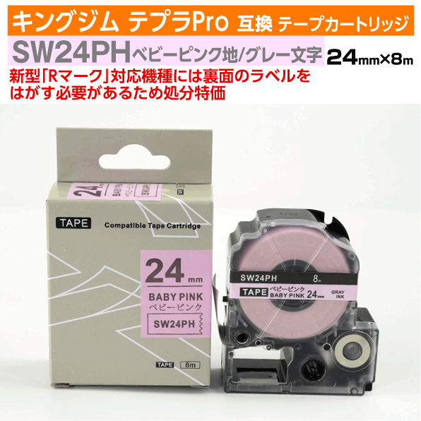 【オープン記念 数量限定セール】キングジム テプラPro用 互換 テープカートリッジ 旧型 SW24PH〔ソフトカラー〕24mm幅 ベビーピンク地 グレー文字 訳あり