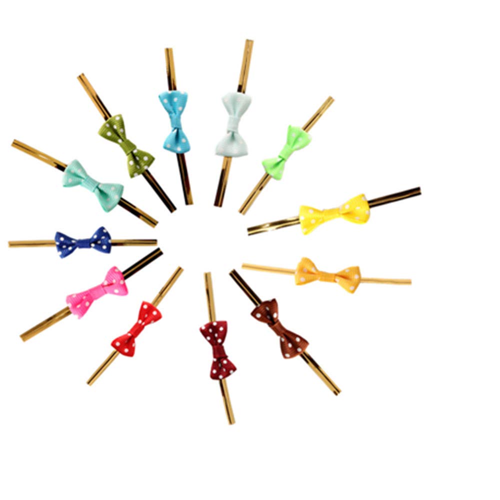 Wind Currents ラッピングタイ リボン付き ミックスカラー 無地 金 ビニタイ 手作り ワイヤータイ プレゼント ギフト 包装用 装飾用 結束用 可愛い 蝶結び 白い点 約100本セット