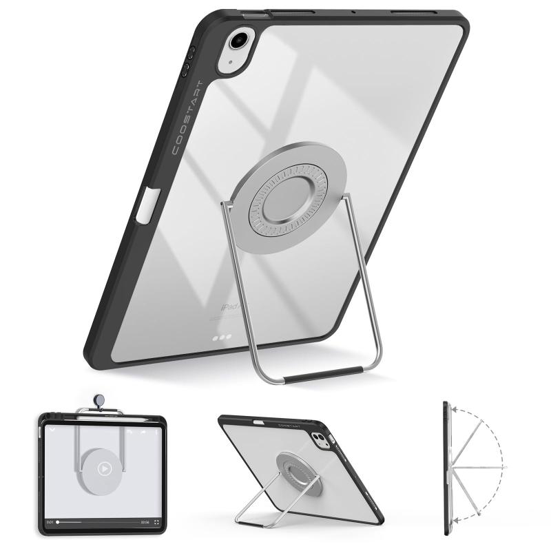 対応iPad A16 ケース 第11世代 11インチ (2025) / 第10世代 10.9インチ (2022) 専用スタンド カバー 横置き 縦置き 壁掛け 360°回転 角度調整 ペン収納 透明 ハード 背面 ソフトTPU フレーム 着脱簡単 軽