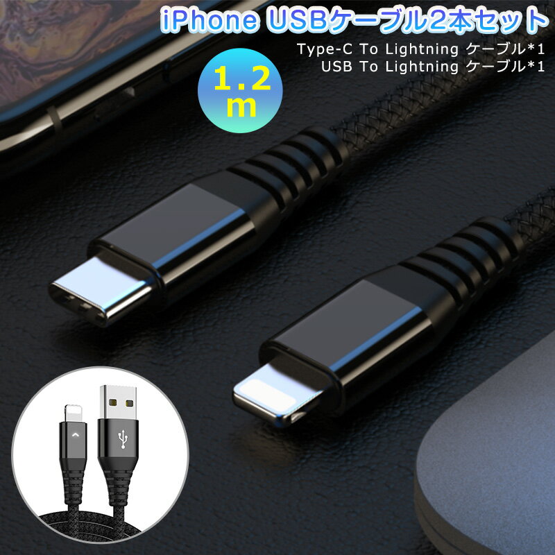iphone充電 ケーブル ライトニングケーブル 超タフ Type-C to Lightningケーブル USB PD対応 1.2m 2本セット 充電ケーブル 2.4A 高速 データ転送 両面挿せる 断線防止 高出力 断線しにくい iPhoneX iPHoneXS iPhoneXR iPhone11 iPhone11 Pro iPhone11 Pro Max 高評価4.57点