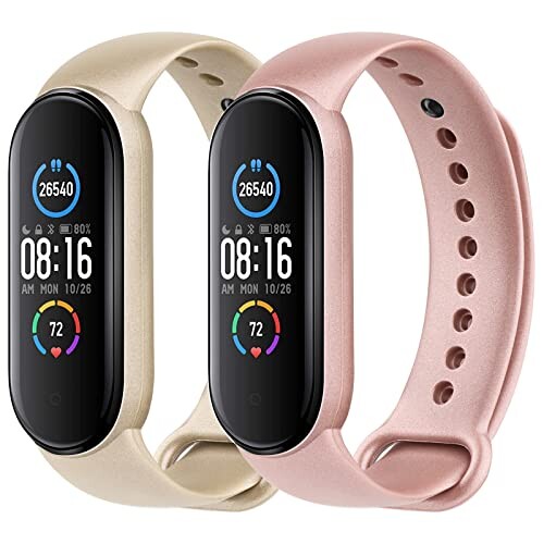 (Vancle) コンパチブル Xiaomi Mi Band 6/Mi Band 5 バンド 替えベルト シリコン製 交換ベルト 対応 Mi band 5/6 スマートバンド (ローズゴールド+ゴールド)