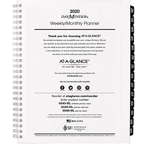 【中古】【未使用・未開封品】At-A-Glance 2020 ウィークリー&マンスリープランナー詰め替え デイマインダー 7インチ x 8-3/4インチ M ワイヤーバウンド エグゼクティブ (G545