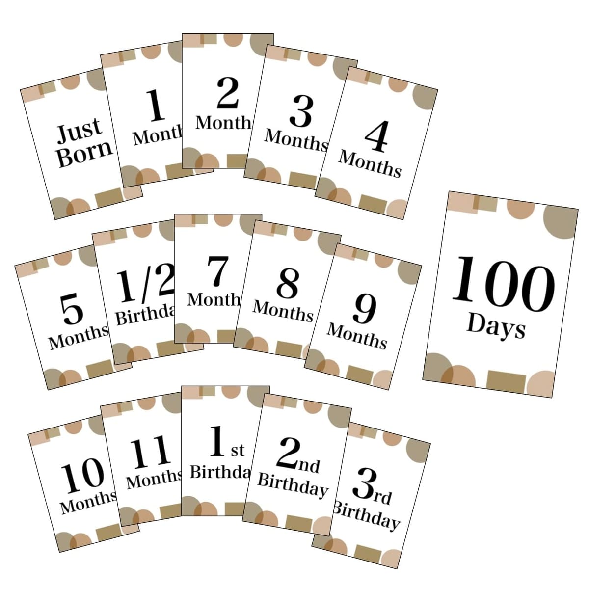 ベビーマンスリーフォトカード (月齢フォトカード) シンプル はがきサイズ / 16枚セット 0〜1歳まで お食い初め、ハーフバースデー対応 (四角 - 1/2 Birthday, ブラウン)