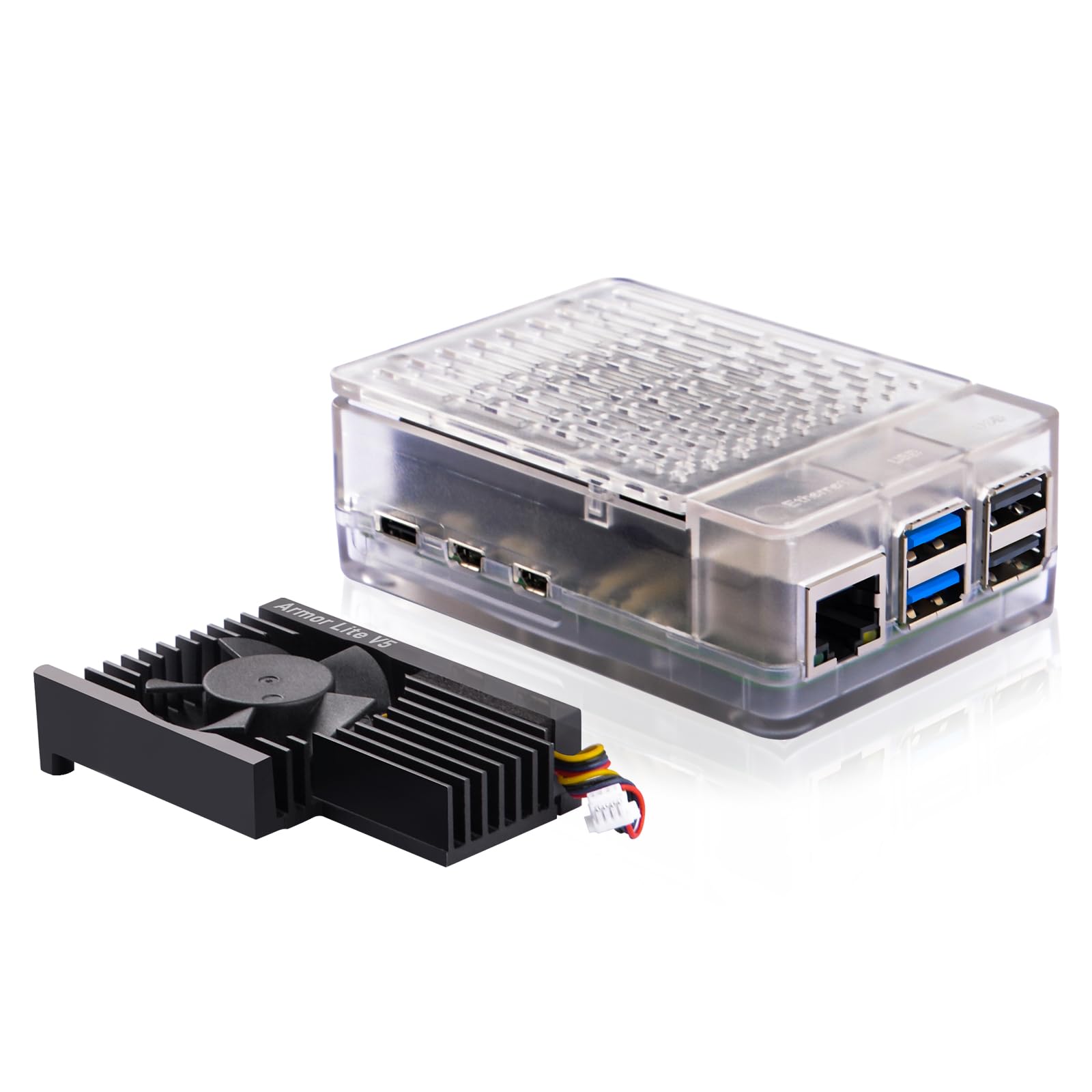 GeeekPi ABSケース Armor Lite V5アクティブクーラー付き Raspberry Pi 5対応 4GB/8GB用 公式クーラー互換 クリア (クリア)