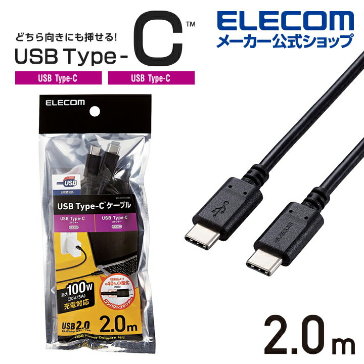 エレコム USB2.0ケーブル C-Cタイプ USB2.0ケーブル USB Type-C(TM) to USB Type-C(TM) 認証品 USB Power Delivery対応 5A出力 100W 高速充電 コンパクトコネクタ 2.0m ブラック ELECOM U2C-CC5PC20NBK