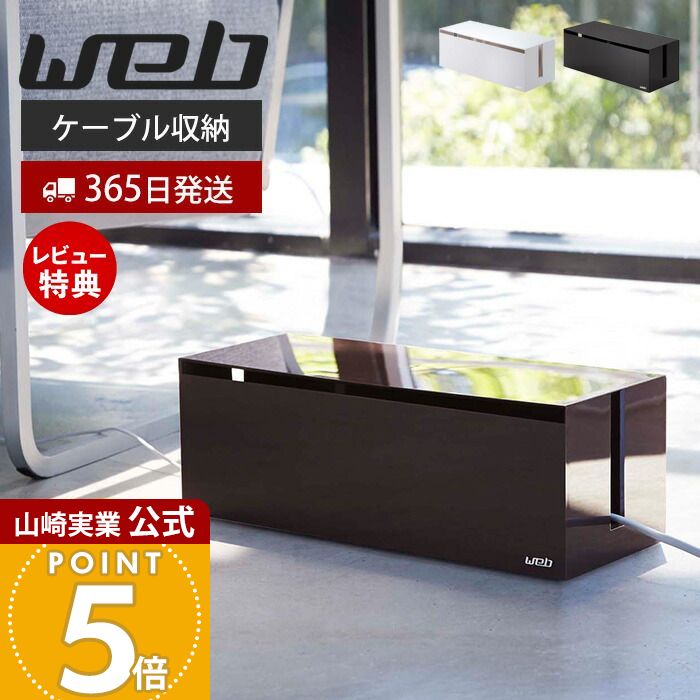 【365日出荷&当店限定特典付き】山崎実業 ケーブルボックス L ウェブ WEB 公式 コード収納 ケーブル 収納 コンセント タップボックス コードボックス 箱 ホルダー ケーブル タップ まとめる ふた ガード ホワイト 2707 2708