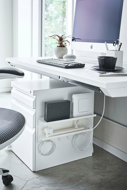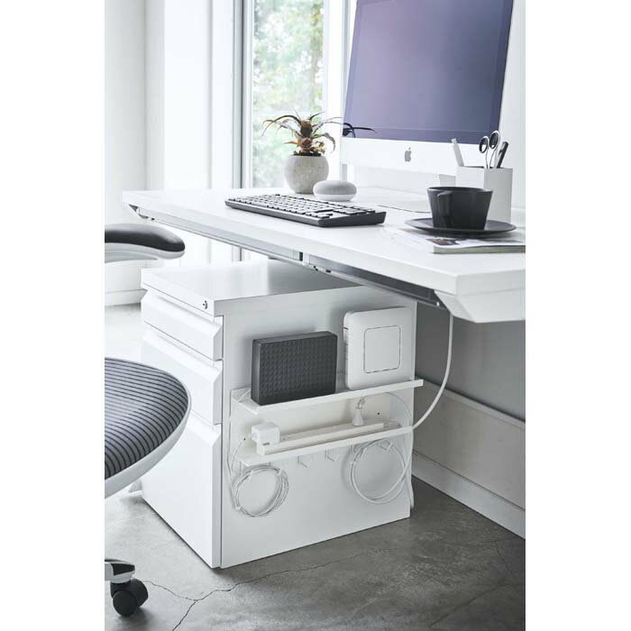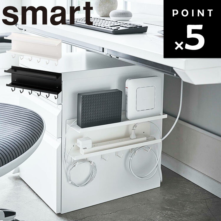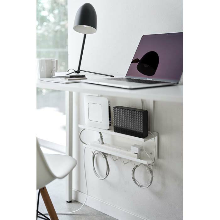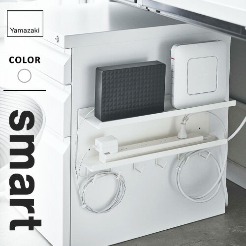デスク下 ケーブル ルーター収納ラック スマート ホワイト 5461 山崎実業 便利 おしゃれ シンプル 書斎 パソコン PC 煩雑 線 まとめる 巻く タップ 周辺機器 整理 整頓 浮かせる 白 デスク奥 隠す収納 すっきり ごちゃつき 解消 ルーター HDD シェルフ 棚 フック smart