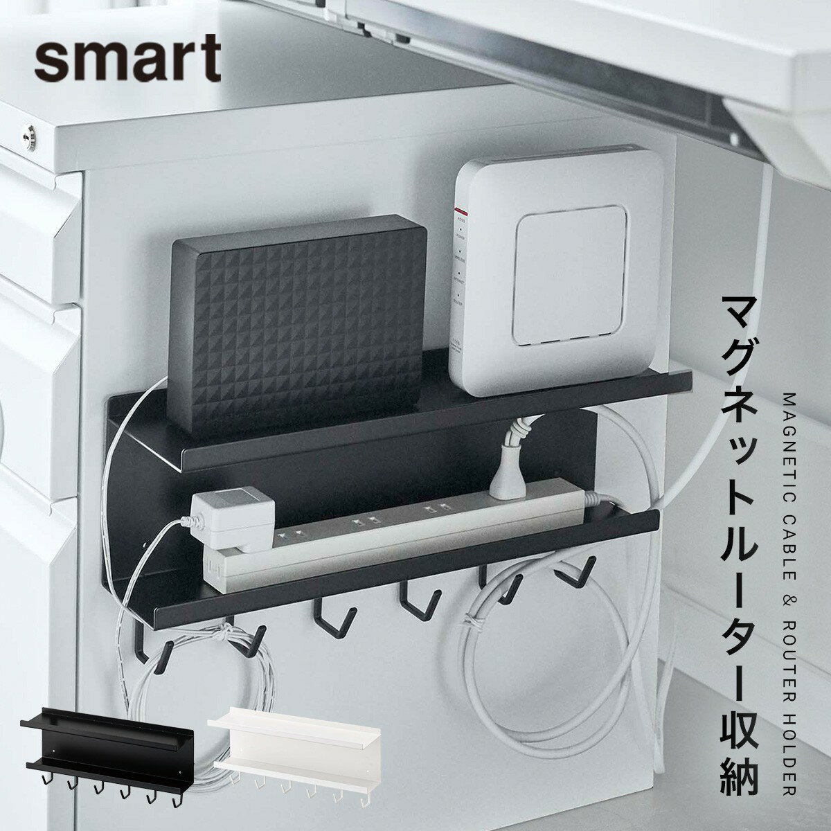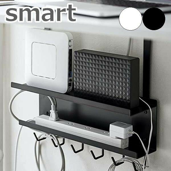 smart マグネットケーブル&ルーター収納ラック スマート 【磁石 石膏ボード マグネット収納 ピン留め収納 ラック デスク下整理 ルーター収納 電子機器収納 壁面収納 収納 整理整頓 ケーブルまとめ コード引っ掛け ホワイト 5463 ブラック 5464 山崎実業 YAMAZAKI】