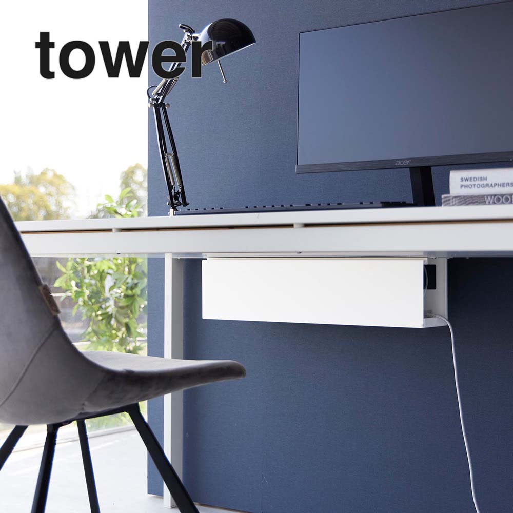 tower タワー デスク下 ケーブル&ルーター 収納ラック スマート[ケーブル収納 ラック デスク周辺 デスク パソコン ケーブル コンパクト 収納 部屋 おしゃれ 片付け 整理 整理整頓 自宅 オフィス リモートワーク 在宅ワーク 山崎実業] 即納