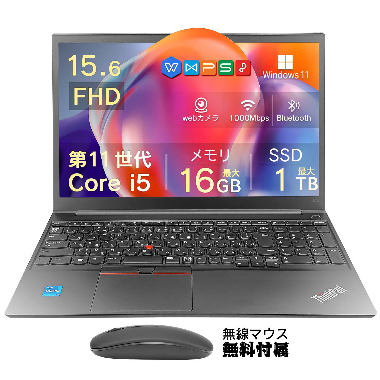 年末激安SALE/中古 中古パソコン 中古ノート LenovoThinkPad E15 Gen2 第11世代Core i5 2.4GHz 大画面15.6インチ液晶 新品メモリー:16GB SSD512GB 1TB 10キー USB 3.0 無線LAN搭載 WPS office付き windows11 搭載 PC パソコン ノート 中古パソコン