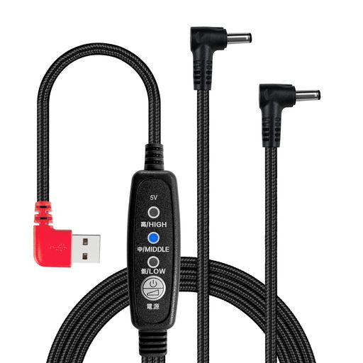 互換品空調作業服用 作業着互換ケーブル ファン 12V USB DC to 3段階風力調整 高 中 低 モバイルバッテリー用コード ユニバーサル あらゆる作業服ファン対応 (ブラック)