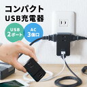 コンセントタップ付きUSB充電器 AC3ポート USB2ポート 2.4A ブラック スマートフォン充電器 スマホ充電器 USB充電器 コンセント 電源タップ コンセントタップ 雷