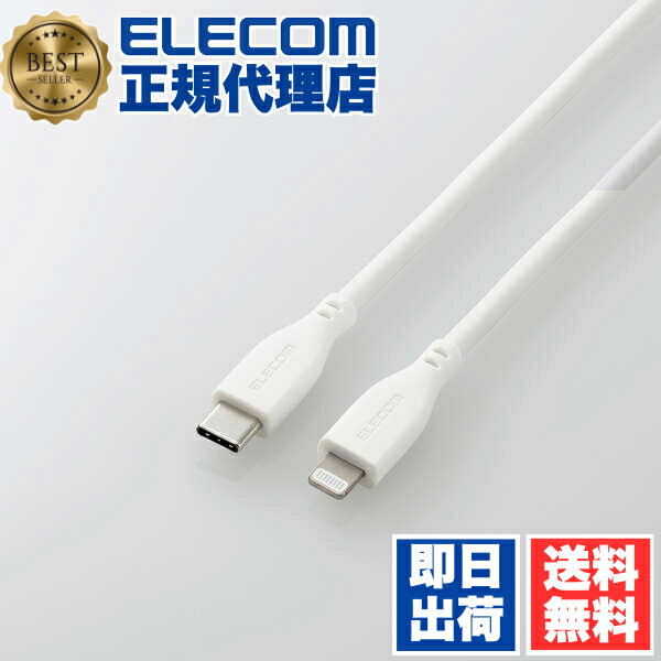 【3個セット】 エレコム MPA-CLSS20WH USB Type-C to Lightningケーブル なめらか USB-C ライトニングケーブル Power Delivery対応 2.0m ホワイト ELECOM 1年保証 配線 ケーブル 対応 シリコン素材 充電ケーブル やわらかい 超急速 送料無料