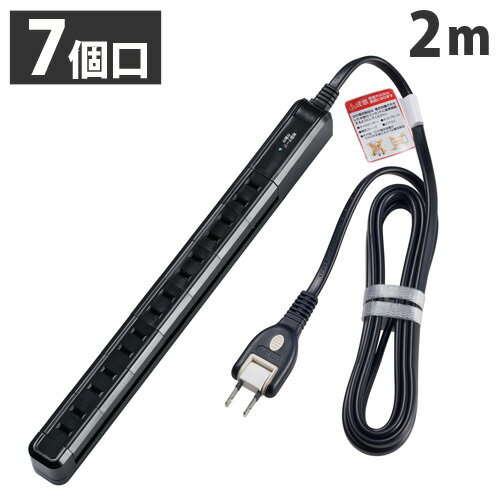 ELPA 耐雷 7個口 2m スリム回転タップ WBS-SL702SB(BK) 電源タップ 雷ガード付