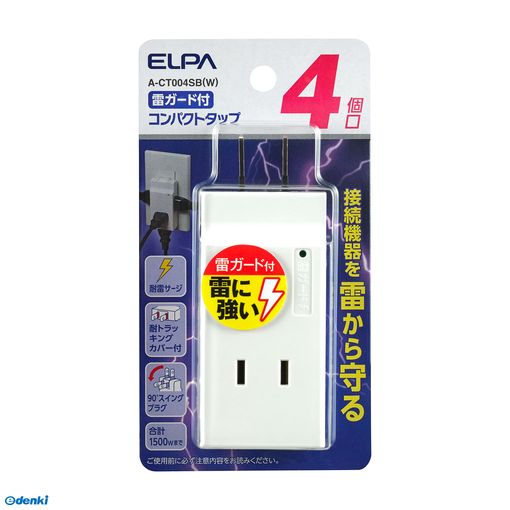 (LINEクーポン有)朝日電器 ELPA A-CT004SB W コンパクトタップ耐雷4個口 ACT004SB W ホワイト コンパクトタップ雷ガード付 対雷サージ機能付 エルパ