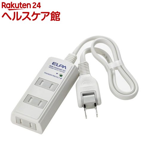 【10日は24時間限定クーポン配布】ELPA エルパモバイル電源タップ AC2個口 雷ガード A-CT002SB W(2404667)