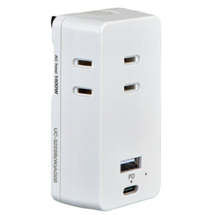 商品情報メーカー朝日電器品番UC-322SB(W)商品名AC3個口 USB-A1ポート 電源タップ 雷ガード仕様●PD(パワーデリバリー)対応で、スマートフォン、タブレット等を超速充電できます。最大20Wまでの給電が可能。 ※USBポートのうちType-Cポートのみ使用時●収納プラグ●雷から接続機器を守る雷ガード付特徴■使用温度範囲:-10℃〜40℃■定格:AC100V 14A■合計1400Wまで■口数:3個口■定格 Type-Aポート:DC5V 3.1A Type-Cポート:DC5V 3A/DC9V 2.22A/DC12V 1.67A2ポート同時使用時:DC5V 3.1A■ポート数:Type-A 1ポート / Type-C 1ポートELPA 朝日電器 UC-322SB(W) AC3個口 USB-A1ポート 電源タップ 雷ガード 【沖縄・離島配送不可】【代引き不可】 PD(パワーデリバリー)対応で、スマートフォン、タブレット等を超速充電できます。最大20Wまでの給電が可能。 ※USBポートのうちType-Cポートのみ使用時 2