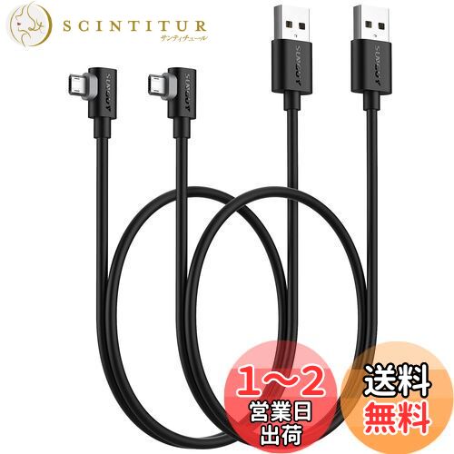 【送料無料】SUNGUY マイクロusbケーブル l字 0.5M 【2本組】両面挿し Micro USB ケーブル 50cm QC3.0/2.0対応 最大18W急速充電 USB2.0高速データ転送 l字型 Samsung Galaxy S6 S7 Edge S5 Note 4/Motorola Moto G5 Plus他対応 ブラック
