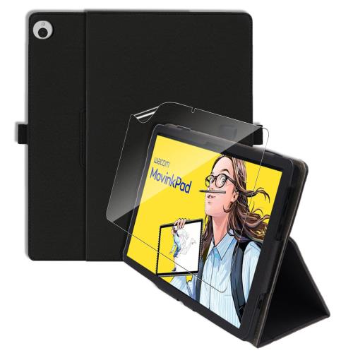 For Wacom MovinkPad 11 ケース フィルム セット スタンド 全面保護 角度調整 キズ防止 軽量 上質PUレザー タブレット用アクセサリー Sediven 保護ケース (ブラック)