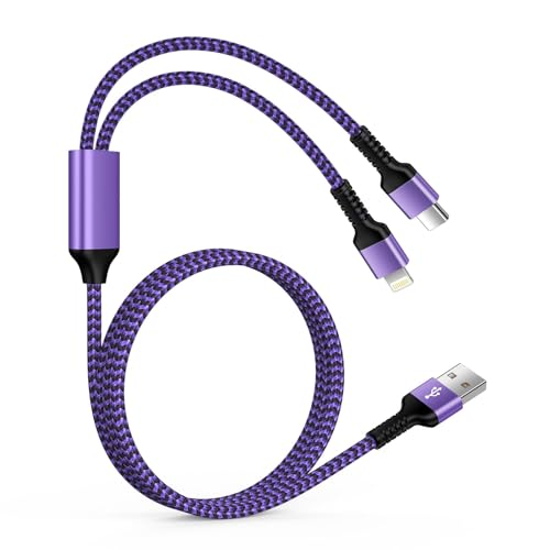 Ocbuo USB to Lightning&Type-C 2in1 充電ケーブル iPhoneとAndriod 2台同時急速充電 マルチケーブル 1本2股/1.2m/5.4A ライトニングケーブルとUSB-Cケーブル 多機能スマホ充電コード アイフォン急速ケーブル アンドロイドタイプCケーブルパープル系