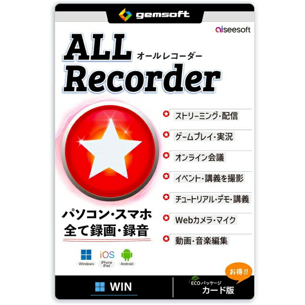 録画・録音ソフト ジェムソフト gemsoft ALL★Recorder カード版 Windows版 スマホ PC 録画 録音 ミラーリング 動画編集 オールレコーダー iPhone iPad Android