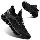[Soulsfeng]メンズランニングシューズ軽量通気性スポーツジムテニスジョギングウォーキング用ブラックスニーカー