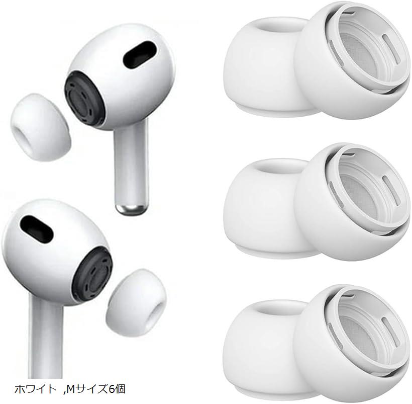 【楽天ランキング1位入賞】互換品 イヤーピース AirPods Pro 第1/2世代対応 ノイズリダクションホール付き 柔らかく快適 滑り止め ノイズキャンセリング 耳栓 ソフトシリコン 交換用イヤーチップ(ホワイト, Mサイズ6個)
