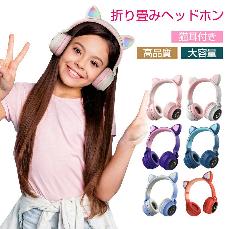 \赤字覚悟!在庫一掃/★即納 ヘッドホン bluetooth5.0 LEDライト付き 猫耳 折り畳み式 マイク内蔵 高音質 軽量 密閉型 無線 柔らかい ブルートゥース 広い互換性 高安定性 知育 学習 音楽 語学勉強 サイズ調節可能 プレゼント 子供用/大人用 送料無料