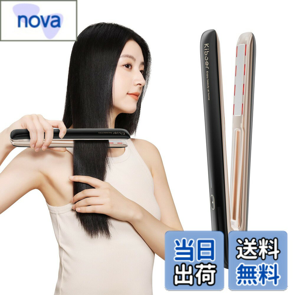 【送料無料】Kiboer 超音波トリートメント ヘアアイロン 美髪ケア 髪質改善 超音波アイロン ディープトリートメント トリートメント導入器 ツヤ髪 1MHz超音波 遠赤外線 赤色 温熱ヒーターLED ヘアケア ヘアダメージ補修 電池残量可視 色:ブラック