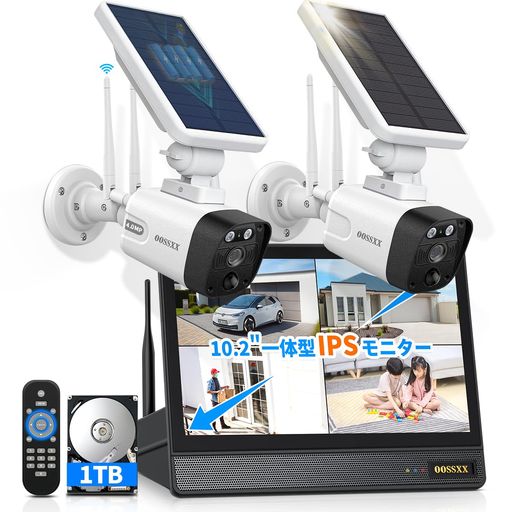 【ソーラーパネル充電・双方向通話】OOSSXXワイヤレスモニター付き防犯カメラソーラー屋外ソーラーパネル充電監視カメラソーラー監視カメラネットワークカメラ電池式カメラソーラーラ…