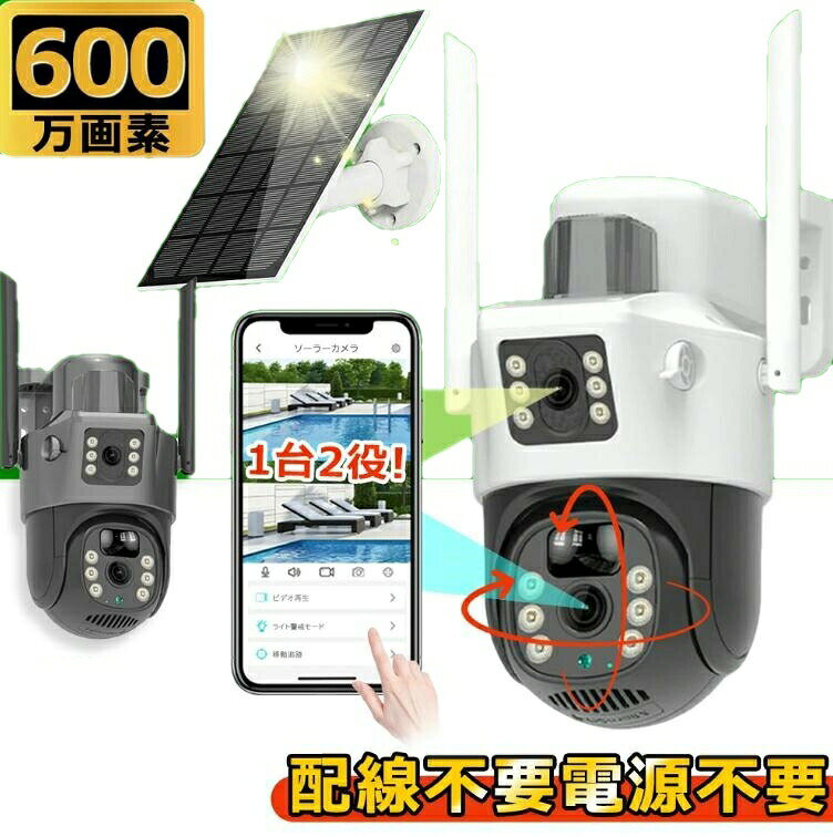 防犯カメラ 屋外 ソーラー電源 最大600万画素 ワイヤレス 監視カメラ 人体検知 自動追跡 録画機能 パンチルト 夜間カラー 双方向通話 遠隔監視 警報通知 簡単設置 スマホ連動 IP66防水 車上荒らし対策 電池式 ソーラーパネル付き